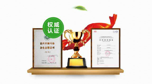 2) 所使用自主研发的产品经过权威计量认证机构检验认证,清除率高达99.4%。